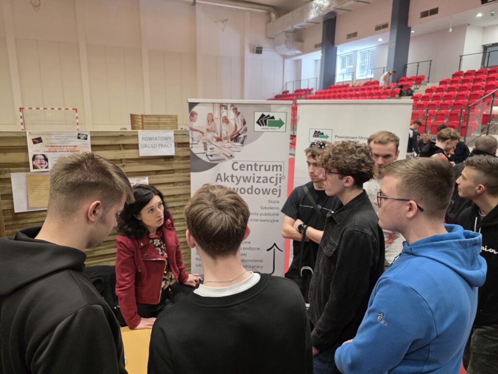 Straż Pożarna zaprezentowała uczniom swoje nowinki z zakresu ratownictwa i gaszenia pożarów oraz poinformowała o możliwych ścieżkach zatrudnienia w Straży, a przedstawiciele Urzędu Pracy proponowali uczniom możliwości finansowania płatnych staży, szkoleń oraz dofinansowania przy otwieraniu pierwszej własnej firmy.