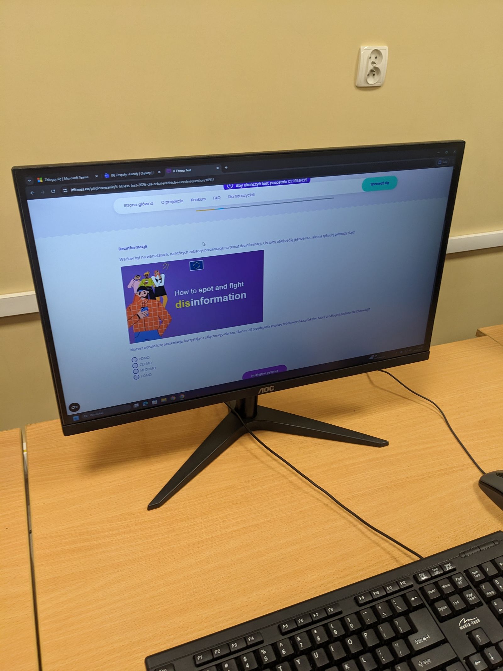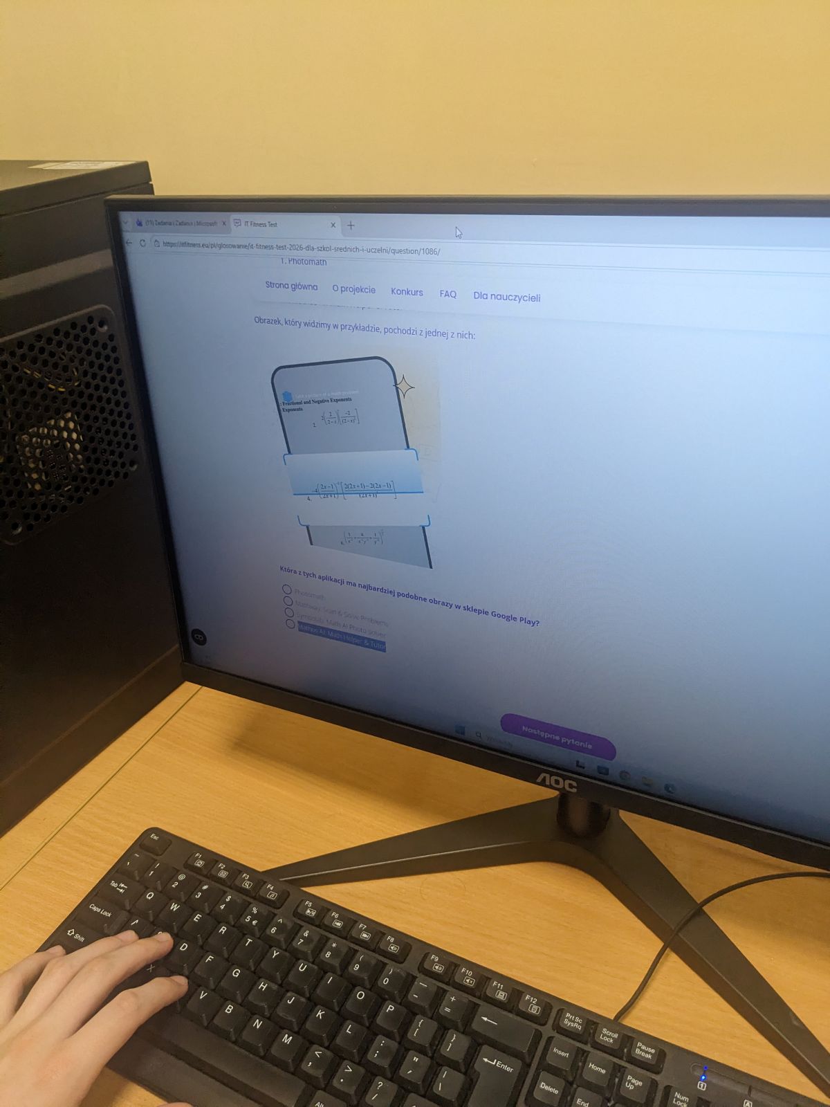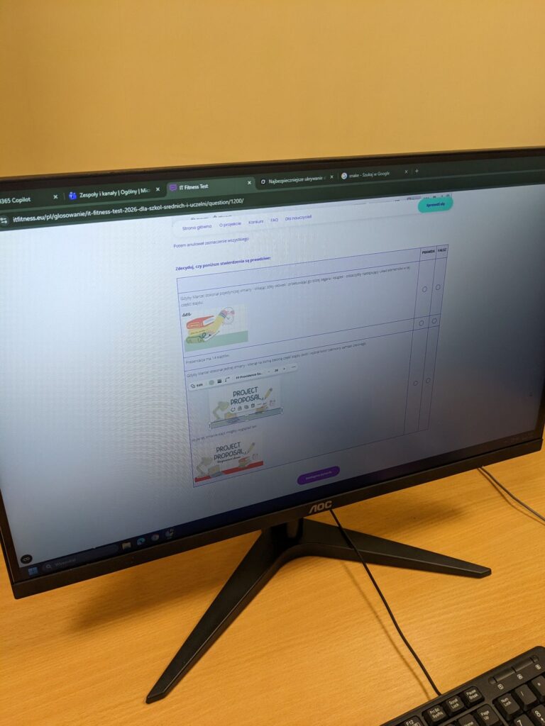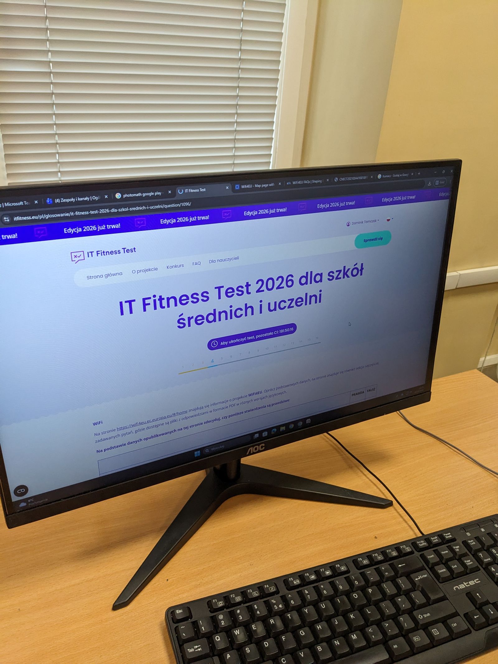 W mijającym tygodniu nasza szkoła na zajęciach z Informatyki zamieniła się w centrum cyfrowych zmagań. Uczniowie z klas I-III dołączyli do tysięcy uczniów z całego kraju, biorąc udział w IT Fitness Test 2026 – największym w Polsce sprawdzianie kompetencji cyfrowych.